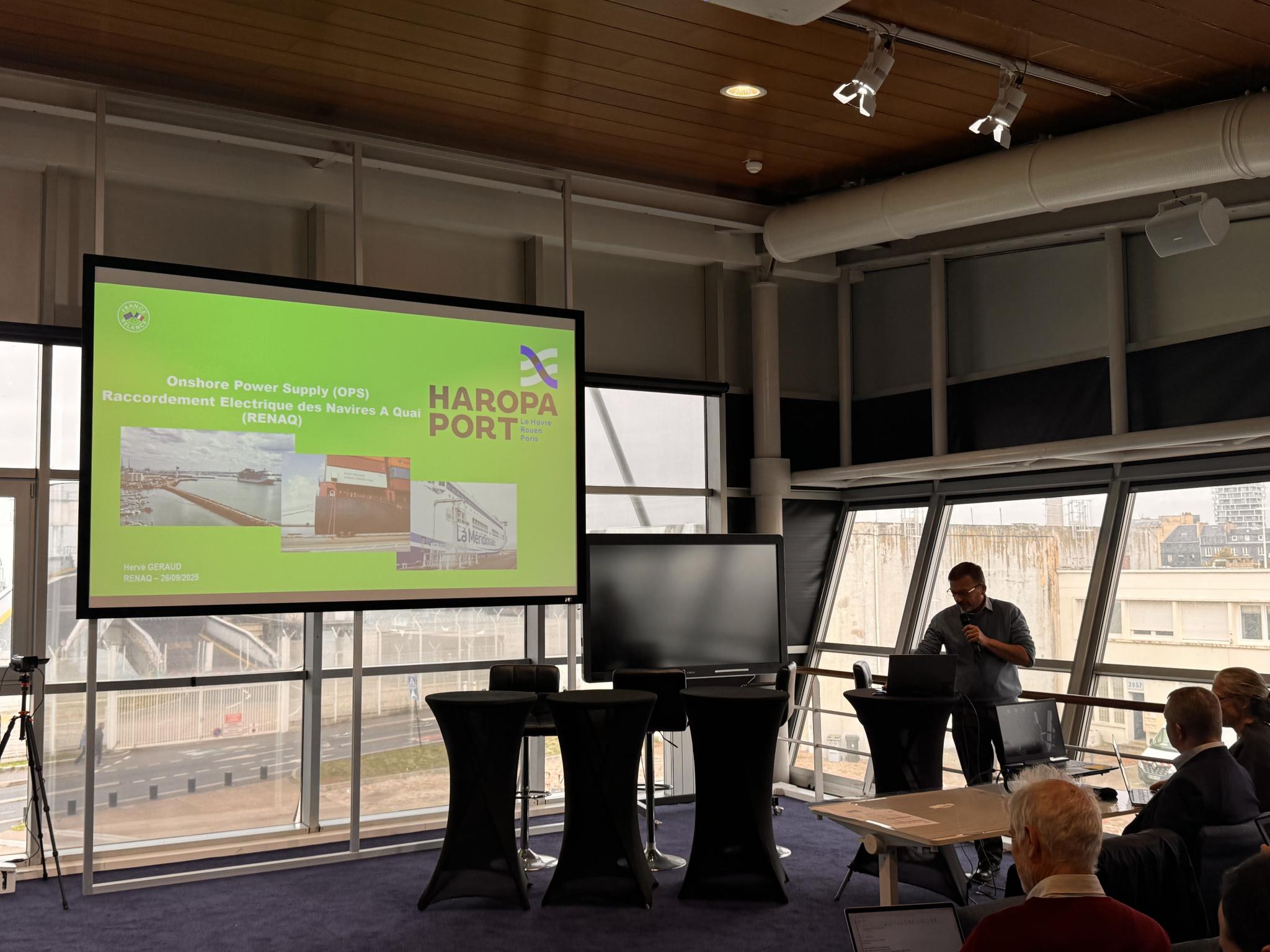 Hervé Géraud (HAROPA PORT) showcased the RENAC Project, an onshore power supply (OPS) system for the cruise terminal. While OPS promises to drastically reduce noise and air pollution, questions remain about cost-sharing, energy sourcing (70% nuclear, 30% renewables and fossil), and long-term scalability.